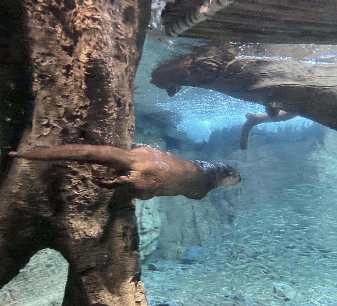 さらに階段降りて進んでいくと、7階はプール部分になっていて、カワウソが泳ぐ姿をガラス越しに観ることができます。