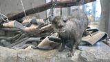 コツメカワウソは、最初のエリア(日本の森エリア)に入ってすぐの8階~7階部分を使用した空間にいます。全部で4匹いるらしいのですが、会えたのは2匹でした。
