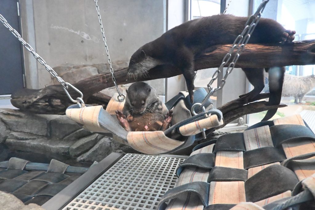 さて、アトアには「お浜ちゃん」と「げんげんくん」という2匹のコツメカワウソたちが展示されています。2匹は桂浜水族館から一緒にやってきたようで、とっても仲良しです。